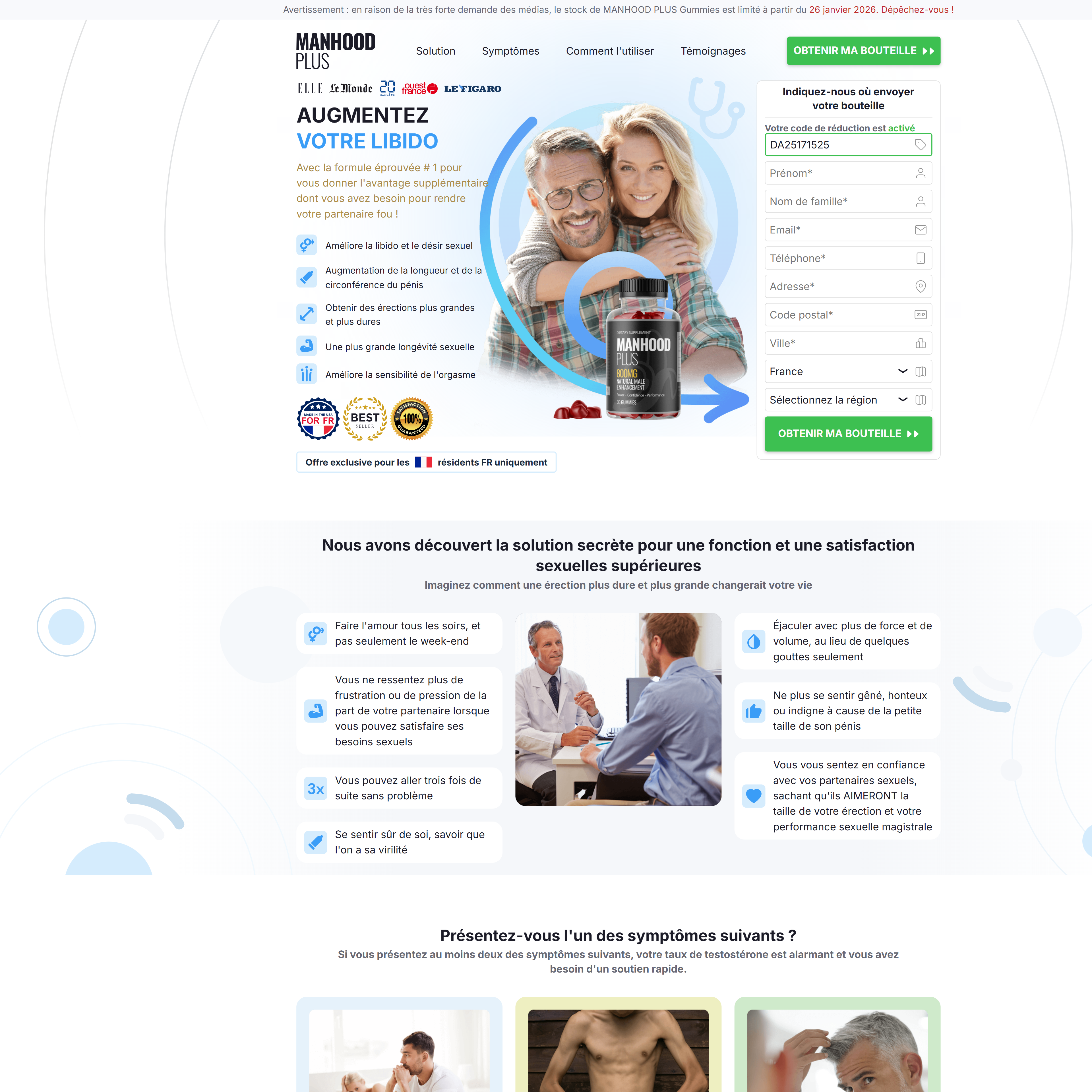 Avant de continuer vers la page Manhood Plus, veuillez confirmer que vous avez plus de 18 ans.